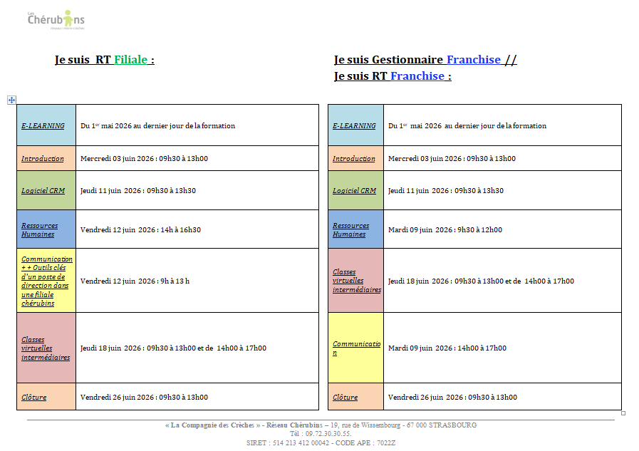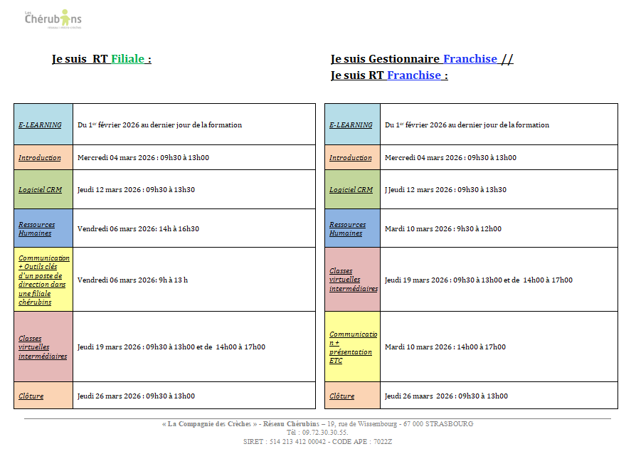 En cas de besoin d’adaptation de la formation dû à un handicap, contacter nous afin d'étudier les compensations possibles à l'adresse suivante : pole-formation@les-cherubins.com et consulter les sites suivants :